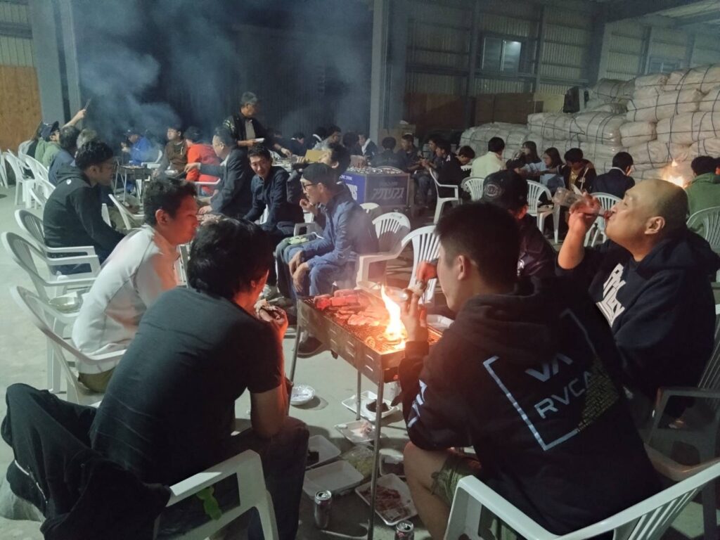 勉強会の後はゲストとしてお招きした通訳の方々、MPアグロの江藤さんらを交えて、恒例の焼き肉をしました。7月の獣魂慰霊祭の時は最後まで明るかったのに、食事が始まるころには暗くなり、季節の進行の速さを改めて感じました。